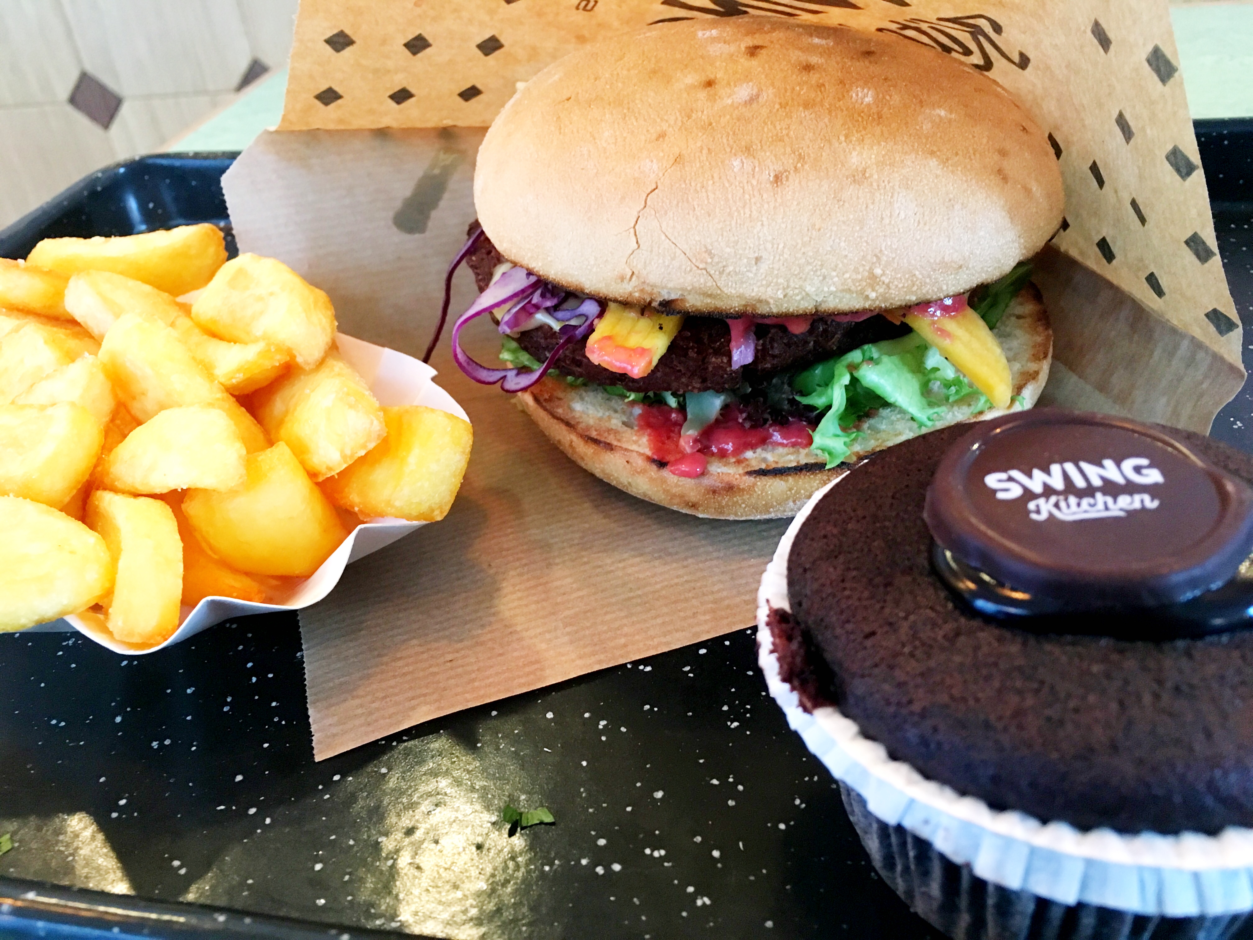 On the way home, however, our layover was lovely.  We had about 8 hours in Vienna and we decided to have our meal at Swing Kitchen.  I had the vegan cheeseburger meal and a cute chocolate cupcake.  I wish I had waited on dessert though, later I found out they had soft serve.  Erica had the falafel wrap.  I did not try it but it sure looked good.